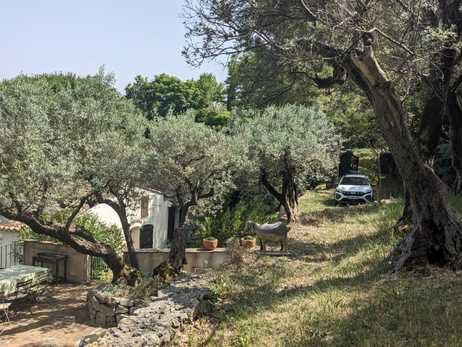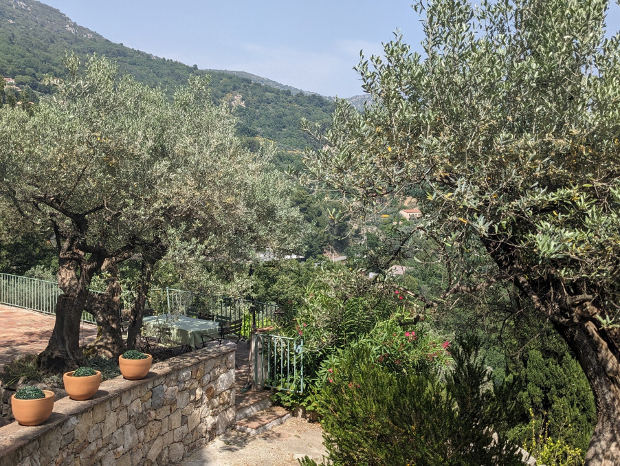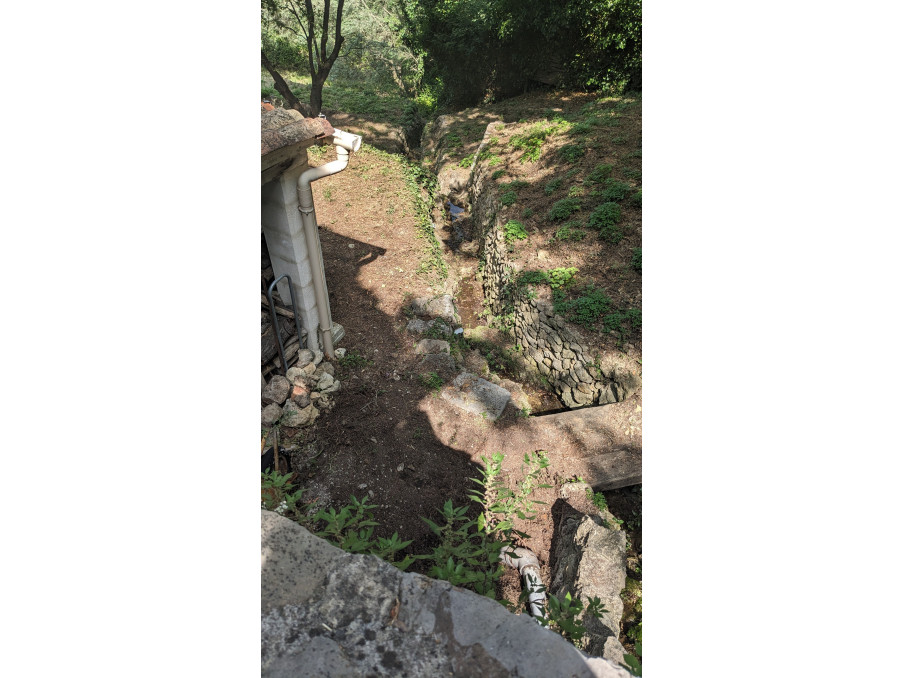 Terrain magnifique en restanques avec de très belles vues sur la montagne; vallon avec de l'eau courante qui traverse et suit le terrain, une grande piscine (environ 50 m2), diverses terrasses, de nombreux oliviers et une belle végétation, sans vis à vis.