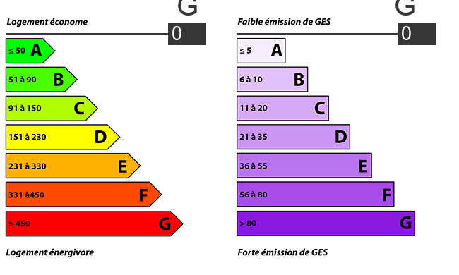 | Estimation des coûts annuels d'énergie du logement | Entre 0€ et 0€ Prix moyens des énergies indexés au (abonnements compris) |